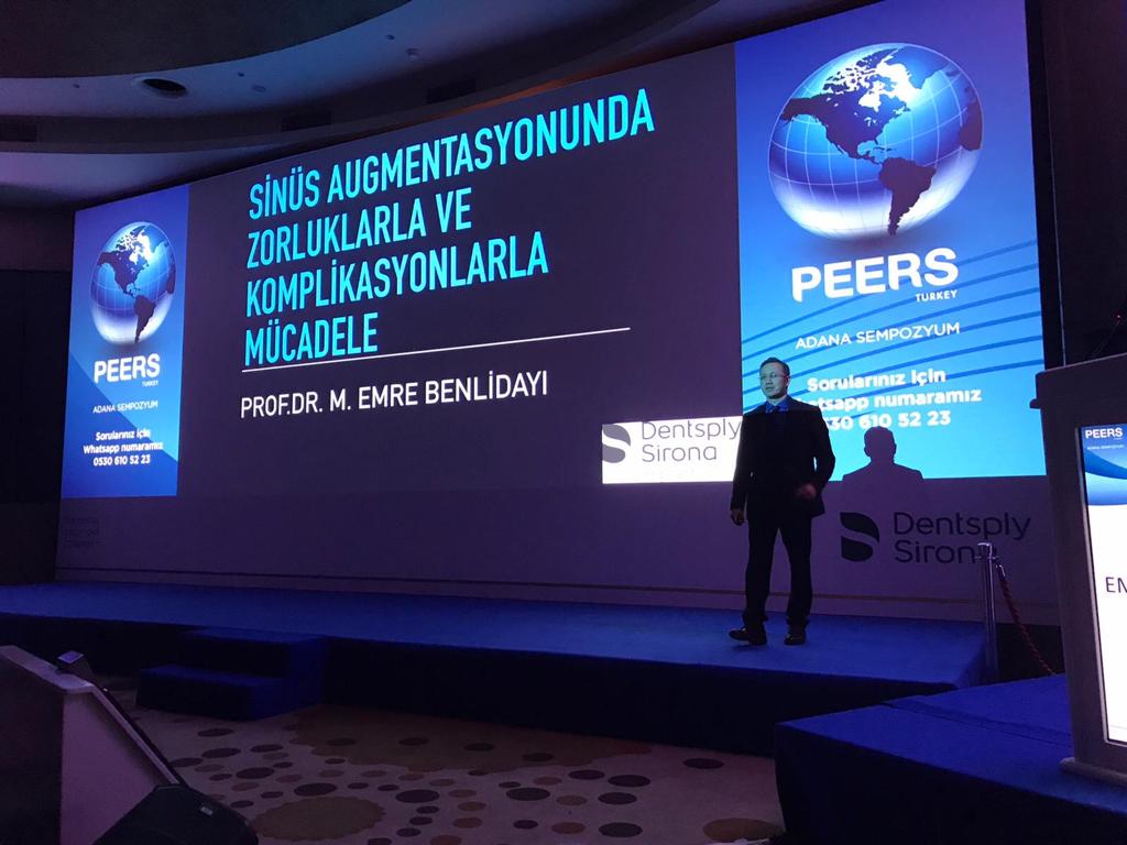 Prof.Dr. M.Emre BENLİDAYI Dentsply Sirona PEERS Adana Sempozyumu’nda implant cerrahisinde yaşanan komplikasyonları sundu.